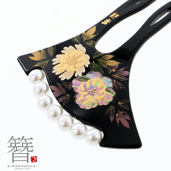 かんざし バチ型 日本製 「黒地 螺鈿 小牡丹 和ピン1571」 銀杏型 高級 簪 礼装用 フォーマル着物 和装 留袖 黒留袖 訪問着 色無地 結婚式 パーティー <H>【メール便不可】