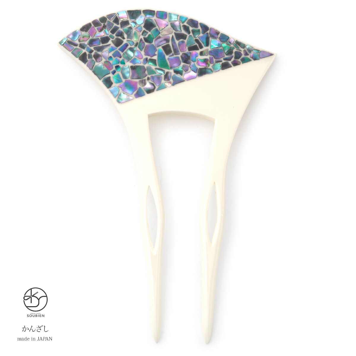 かんざし バチ型 簪 髪飾り 結婚式 黒留袖 留袖 浴衣 モダン 簪 和装 礼装 飾り 白 和 扇 斜め 貝殻 螺鈿 らでん 普段使い 日本製【あす楽対応】【送料無料】