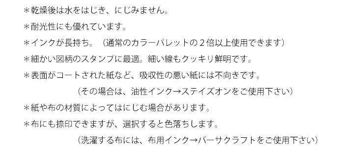 (その場合は、油性インク→ステイズオンをご使用下さい) *紙や布の材質によってはにじむ場合があります。