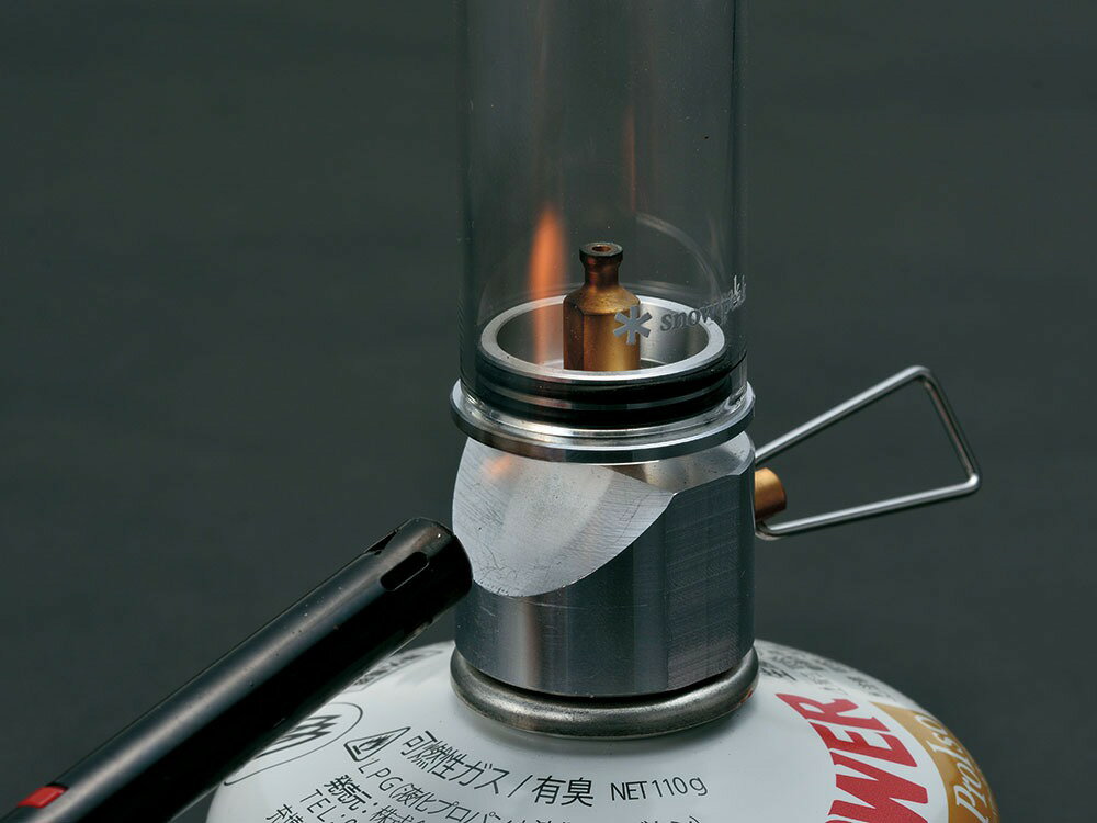 サイズ:42×40×105(h)mm 材質:アルミニウム合金、ブラス、ゴム、ガラス、ステンレス鋼 サイズ:42×40×105(h)mm 重量:102g 収納サイズ:51×47×112(h)mm |snowpeak|ランタン|SNOWPEAK(スノーピーク)